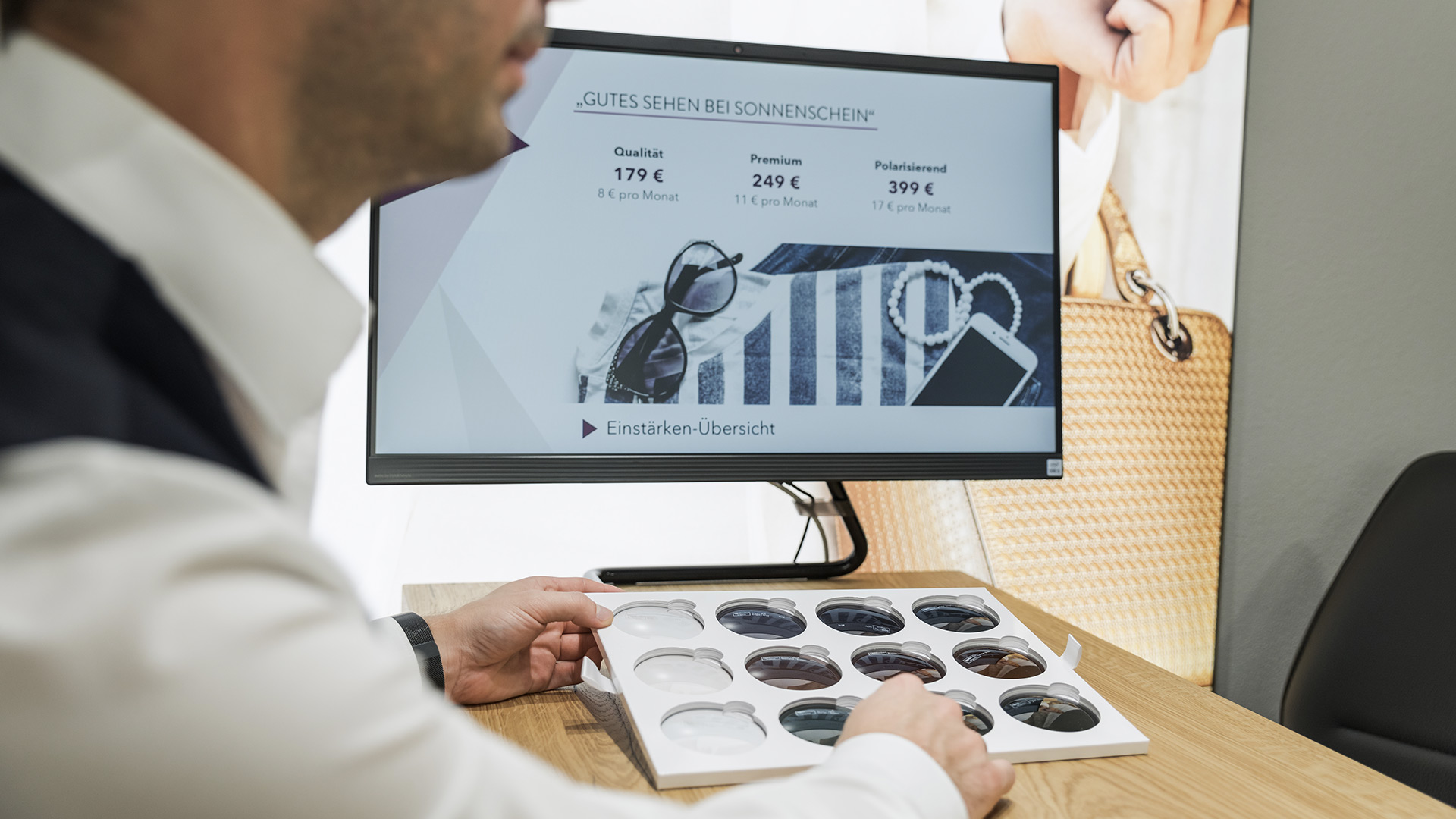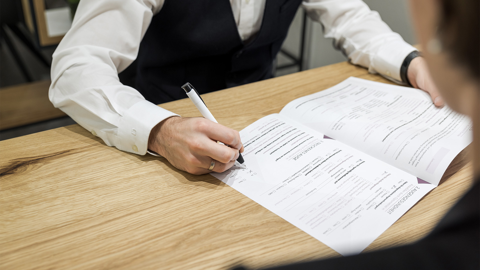 BedarfsanalyseSCHRITT 01/10Zunächst einmal hören wir Ihnen genau zu und ermitteln Ihren ganz individuellen Sehbedarf. Wir stellen Ihnen hierzu einige Fragen, um Sie und Ihre Sehgewohnheiten besser kennenzulernen und eine umfassende Beratung zu ermöglichen.Wellenfront-MessungSCHRITT 02/10Mithilfe hochmoderner Wellenfront-Technologie bestimmen wir mit dem Wave Analyzer nicht nur Ihre exakte Sehstärke, sondern erstellen eine detaillierte Karte von der Oberfläche Ihrer Augen. Durch die ausführliche Vormessung können mögliche Auffälligkeiten der Hornhaut, des Augeninnendrucks oder der Augenlinse frühzeitig erkannt und ein Besuch beim Augenarzt empfohlen werden.3D-Erlebnis-SehtestSCHRITT 03/10Im nächsten Schritt ermitteln wir mit unserem neuartigen 3D-Erlebnis-Sehtest Ihre exakten Brillenwerte für perfektes Sehen. Das Besondere: erstmals sind beide Augen während des Tests geöffnet. So können wir Ihrem natürlichen Sehen möglichst nahekommen und auch das Zusammenspiel der beiden Augen berücksichtigen.Ihre persönliche Brillen-LösungSCHRITT 04/10Zunächst einmal hören wir Ihnen genau zu und ermitteln Ihren ganz individuellen Sehbedarf. Wir stellen Ihnen hierzu einige Fragen, um Sie und Ihre Sehgewohnheiten besser kennenzulernen und eine umfassende Beratung zu ermöglichen.Fassungs- & StilberatungSCHRITT 05/10Sie möchten mit Ihrer neuen Brille nicht nur gut sehen, sondern auch gut aussehen? Als modisches Accessoire unterstreicht eine Brille auch Ihre Persönlichkeit.